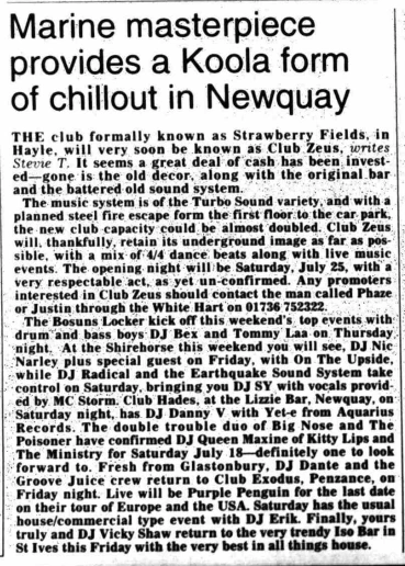 I found this in the 'West Briton & Cornwall Advertiser' dated 9th July 1998: “Club Hades, at the Lizzie Bar, Newquay, on Saturday night, has DJ Danny V with Yet-e from Aquarius Records.”
