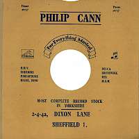 Cann's is well remembered by Sheffield record buyers and others. It was named after the founder and owner Philip Cann, and his name was on the front of the original building. The shop opened at the top end of Dixon Lane, No. 4. Dixon Lane today is a rather forgotten backwater, but was once a busy thoroughfare leading up to the city centre from the old market. They are listed there in the Sheffield Trades Directory 1927-28, although judging by surviving 78 rpm sleeves from the shop (with their catchy slogan “Cann’s The Music Man”) were probably there before this; one early 78 Cann’s sleeve lists them stocking Winner, Pathe, Zonophone and other early labels.