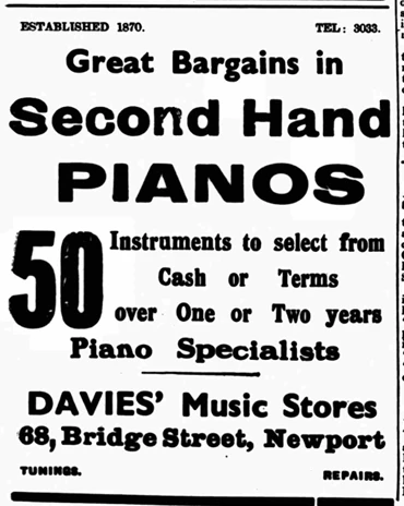 “RECORDS FROM 'POPS' to CLASSICS at DAVIES' MUSIC STORES, 68 BRIDGE STREET, NEWPORT.”