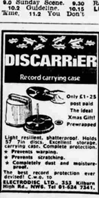 I found this prize in a competition (linked to the film 'Here We Go Round The Mulberry Bush') in the 'Kensington Post' dated 23rd February 1968: “3rd: A 3 guinea record voucher to exchange at Electrodisc, Kilburn's International Record Centre. The rules, again: You must be roughly between 17 and 25, female, interested in movies. Write to me about 'Here We Go Round The Mulberry Bush' as soon as you can.”