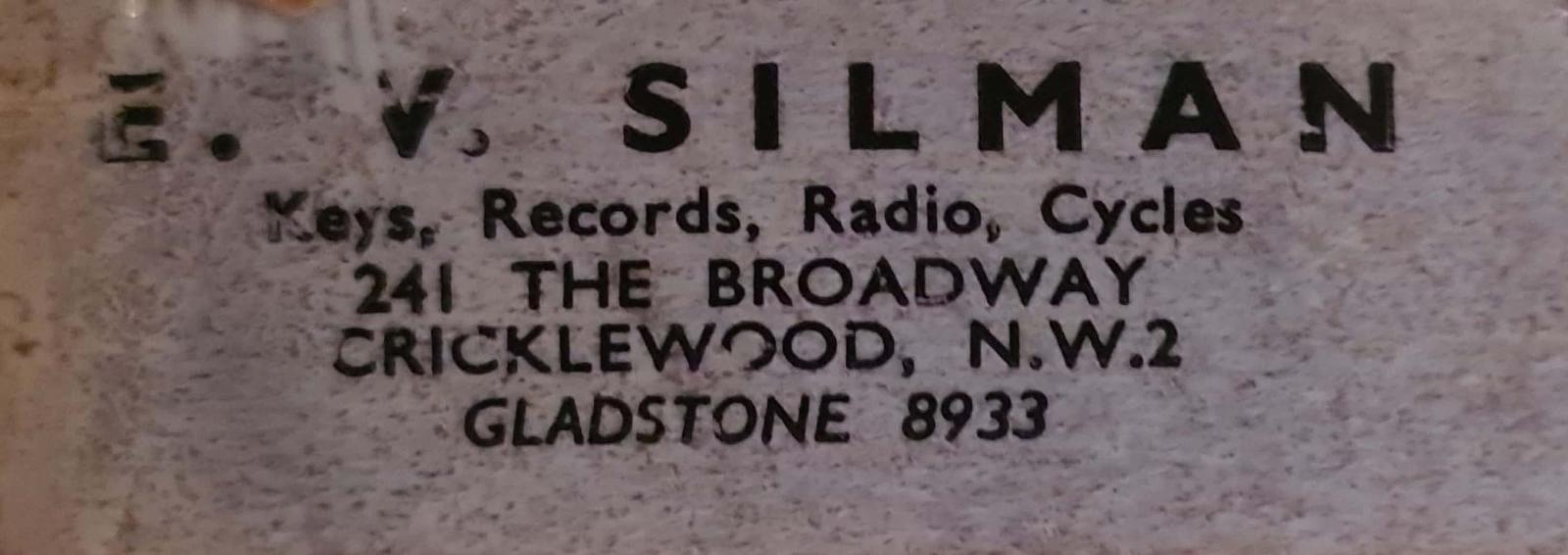 “E. V. SILMAN, 241, The Broadway, Cricklewood.”