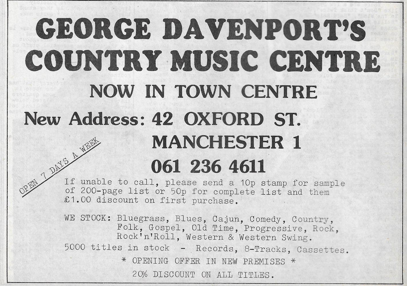 I found this piece in the 'Manchester Evening News' dated 18th July 1992: “George Davenport opened Pandemonium 10 years ago. Prior to that he ran a Country and Western shop in St Peter’s Square.”