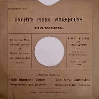 I found this in the 'Hawick News & Border Chronicle' dated 15th April 1921: “HAME O’ MINE. This most successful song can now be had on a Gramophone Record. Price 3/- from GRANT’S Piano Warehouse, HAWICK.” ...and this in the 5th October 1923 edition: “PRICES BACK TO PRE-WAR PRICE – H.M.V. RECORDS: Plum 10 inch Now 3/-, Plum 12 inch Now 4/6, Black 10 inch Now 4/6, Black 12 inch Now 6/6. ZONOPHONE: Now 2/6 and 4/-. Grant’s Piano Warehouse, Hawick.”