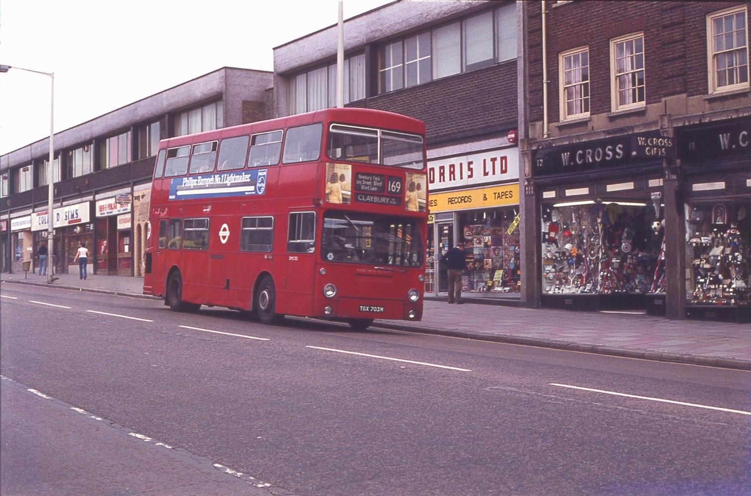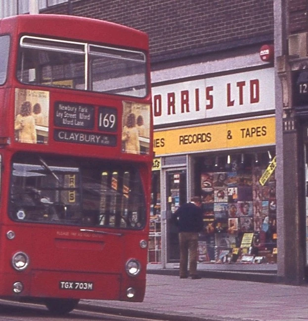 22h ·DMS703 on route 169 taken opposite Barking Station Sunday 12/06/1977. The adverts on the front are for Roger Daltrey's 'One of the Boys' album. I can't see that displayed in the window of 'Guy Norris' but I can make out 'Hotel California' by the Eagles, 'Animals' by Pink Floyd and the first Peter Gabriel solo album.
