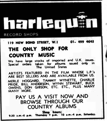 Comment: Now I am certain there must have been a branch in either Southgate or Wood Green as the old paper bags they used to put the records in sticks in my mind. On a more bizarre note Harlequin Records also makes an appearance in one of the Confessions sex comedy films from the 1970s - I suspect from memory it was the Pop Performer one.