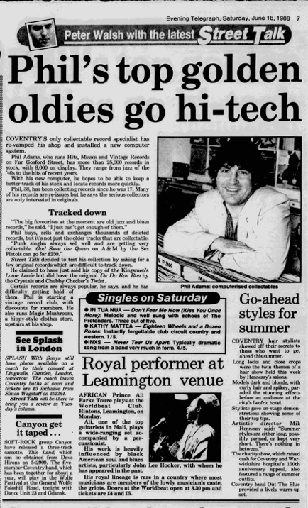 I have the left over records from his shop, the headed paper he had for both Hits N Misses and the Magic Mushroom. I do also have the big red neon RECORD sign he had hanging in the window