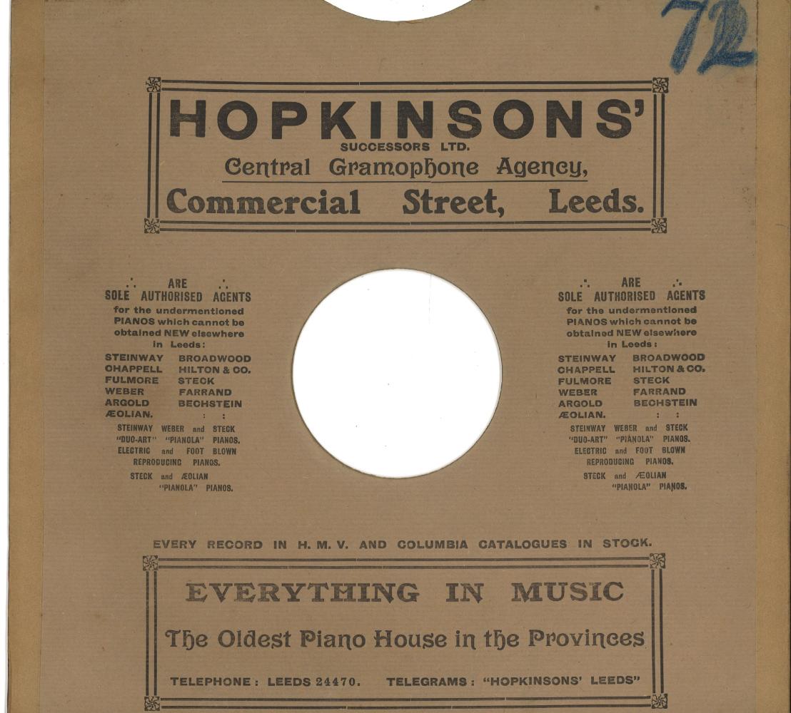 I found this advert in the ‘Yorkshire Evening Post’ dated 30th November 1950: “HOPKINSONS SUCCESSORS LIMITED, 5-6 COMMERCIAL STREET, LEEDS. Tel. Leeds 30033-34. What a wonderful present for a record-lover! This compact Decca Player is made for these amazing new 33 r.p.m. Long Playing records (and, of course, your radio-gram can still be used for standard discs).”