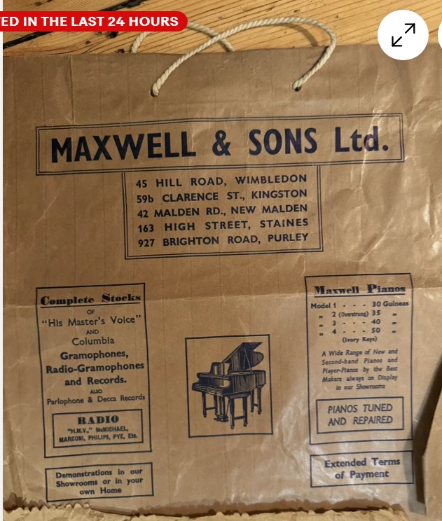 Comment: At the foot of Wimbledon Hill was a very posh music shop called Maxwells - instruments, everything. Had separate listening booths. They would put anything on for you from stock or ordered - probably from the influence of The Gramophone (mainly classical LPs reviewed but some jazz). They were very good and did not seem to mind if you didn't buy the LP you had heard! We schoolkids used it a lot!