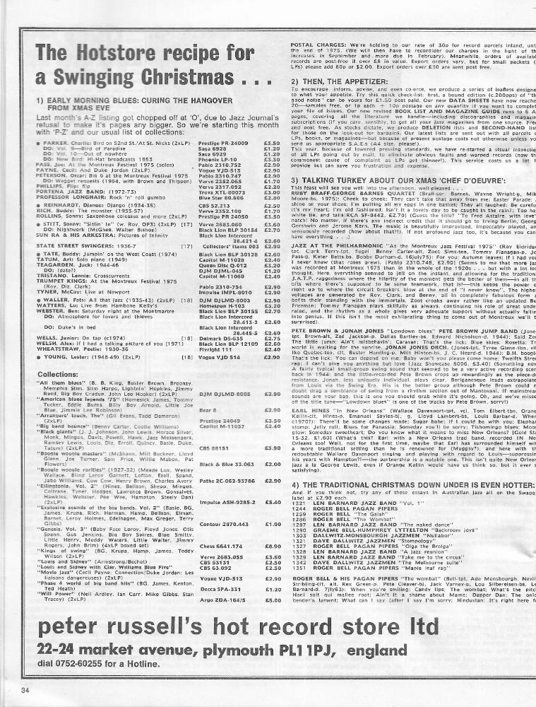 What a great find this is! I started to import records (into New Zealand) from Peter Russell in I think about 1972. In those days to try to prevent people sending NZ money out of the country, we were limited to one 5/- British postal note per day from the local post office. It took quite a few trips to the local post office (I lived in the country) and much poring over 'The Good Noise' to decide what to get. Many of the discs I got in those days I have converted to compact discs and they are still much enjoyed. Ace Of Hearts were pretty cheap and then Coral were even cheaper - 99p. There was never much personal service from Peter-never any comments but good prompt service and oh, the joy of receiving a fresh parcel of records from the UK.