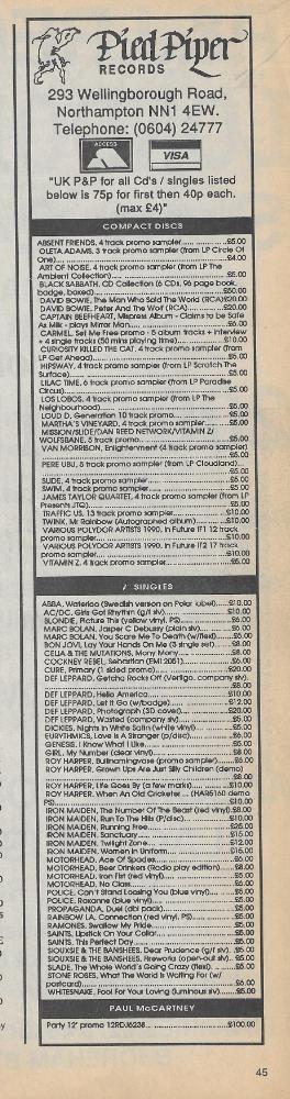 I found this address in the 'Northampton Herald & Post' dated 23rd May 1996: “Pied Piper Records of Wellingborough Road, Northampton. (01604) 24777.”