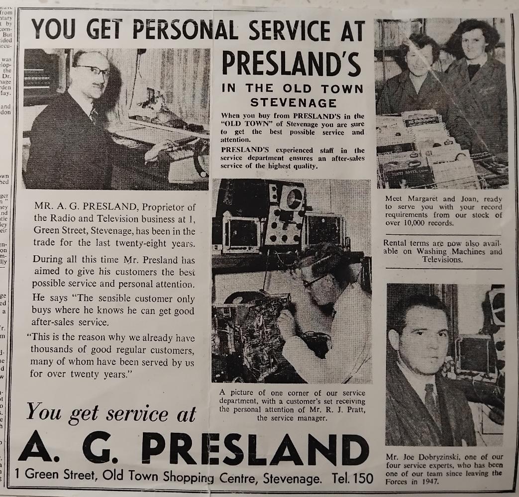 A family run business from the 1960s. Although a record store Preslands also had carried out electronic repairs at the back of their premises of TV, radio and musical instrument amplifiers. They used to retail electronic components too to the public and was always happy to give technical advice on electronic circuits. Many young experimenters were helped start a lucrative career in electronics thanks to them. Preslands relocated in the 70s from a nearby side street to High St, 99.