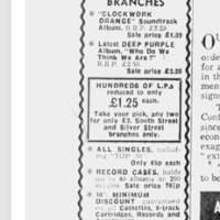 Comment: A great place to spend a Saturday afternoon. I remember the weekend that The Stones' Let it Bleed was released when they must have sold hundreds of copies. And then next door to the Wimpy for a coffee and a No.6.