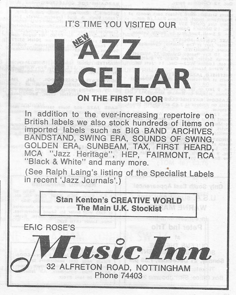 I found this advert in the 'Nottingham Evening Post' dated 21st December 1995: “JAZZ AND NOSTALGIA CDs from Nottingham’s oldest record store, at prices cheaper than the chain stores. MUSIC INN RECORDS West End Arcade (opp MGM Cinema). Tel: 0115 9470754.”
