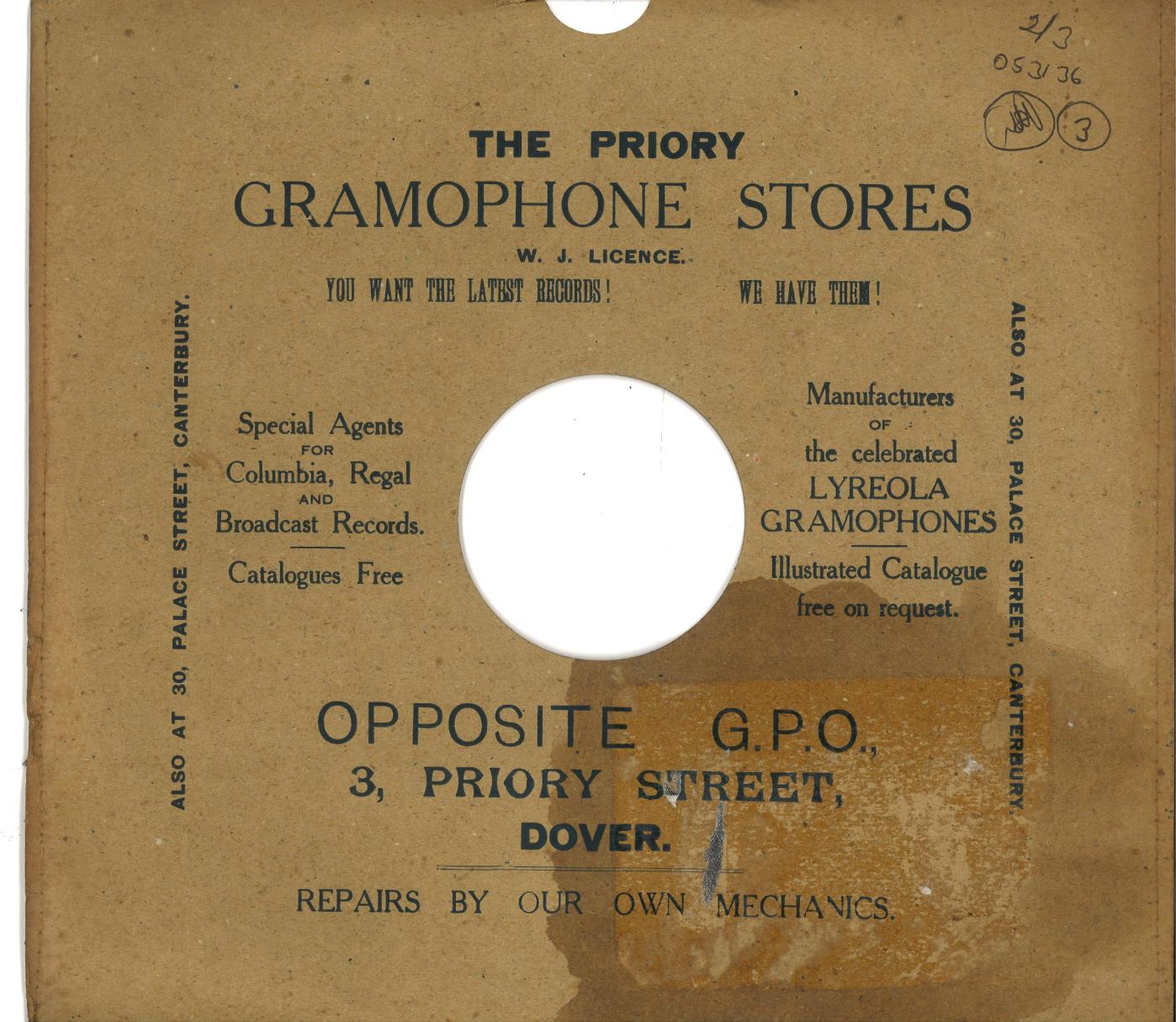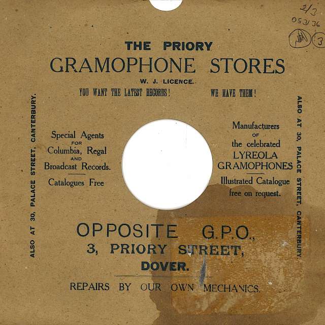 I found this in the 'Dover Express' dated 23rd December 1927: “RECORDS: You want the Latest - we have them at The Priory Gramophone Stores (Opposite G.P.O.), 3 PRIORY STREET, DOVER, and 30, Palace Street, CANTERBURY. Complete Stocks of all Leading Makes.”