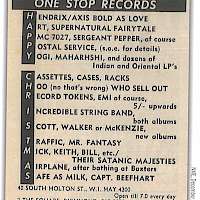 Comment: I stopped in to One Stop on South Molton Street at least once a week for years. Fantastic hushed, rather exclusive vibe. I remember looking longingly at imports of West Coast bands like Quicksilver, Jefferson Airplane, Zappa and Love. It was always a thrill to buy something there, and the counter staff - the hippest of the hip. I also bought tickets to all-nighters at The Lyceum there - an even bigger thrill.