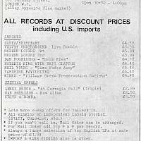 Comment: A wonderful shop. As I commuted through East Croydon as a schoolboy I was able to pop in there for ten minutes on my way home. I remember it being quite small and crowded and noisy. It was a real community shop - lots of gig adverts, musicians wanted notices, music/underground/head papers etc. Lots of bands playing at the Greyhound in Croydon would pop in - I remember the Rich Kids with Glen Matlock and Midge Ure dropping in for a signing - it was packed - but I got my autographs on their first single!