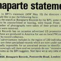Comment: Bonaparte Records, Guildford. When punk hit they went from Psych-hippy stuff to having the best selection of imported punk singles anywhere. I can still visualise all those fab exotic-looking sleeves.